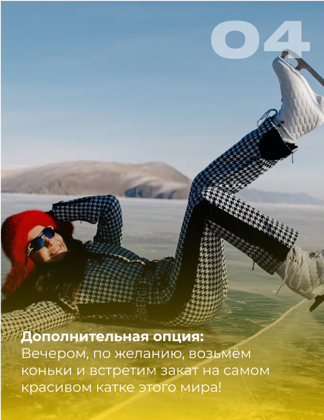 P.S. В солнечные дни лучи отражаются от ледяной поверхности и идеально белого снега: берите с собой SPF-крем и солнцезащитные очки.